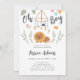 Personnalisez facilement cette magnifique invitation de lion safari "Oh Boy" pour votre baby shower. L'invitation présente de l'art mignon lion entouré de sprigs verts, un mobile, des chauffes et une couronne. Achetez en téléchargement instantané ou faites expédier des invitations directement à votre domicile.