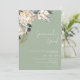 Boho Sage White Protea Pampas Grass Faire-part de mariage Gras faire-part de mariage fleurie avec un arrangement floral protéa blanc sur un arrière - plan de couleur sage.