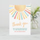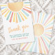 Cette version de téléchargement numérique de l'étiquette de remerciement "Thank You" est un moyen joyeux et vibrant d'exprimer sa gratitude, avec un soleil brillant en haut et "Thank You" écrit en script coulant en dessous. Un court mot de remerciement, ainsi que le nom de la famille, complète le design, le rendant personnel et sincère. Le verso de l'étiquette affiche également le soleil, ajoutant une touche supplémentaire de chaleur et de couleur. Cette étiquette est parfaite pour une fête du premier anniversaire "First Trip Around the Sun" ou même une baby shower "Here Comes the Son". Son thème amusant et coloré avec des teintes jaunes, orange et sarcelle la rend idéale pour toute célébration remplie de soleil.