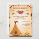 Éblouissez vos invités avec ce beau thème tribal genre révéler invitation avec une tente tipi traditionnelle et de beaux éléments bohème contre un arrière - plan parchemin vintage. Ajoutez simplement les détails de votre événement sur ce modèle facile à utiliser pour en faire une invitation unique. Retournez la carte pour révéler un élégant motif aztèque au dos de la carte.