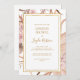Ce boho tropical botanique | invitation à la douche de lingerie est parfait pour votre élégant mariage à fleurs rustiques, vert, pêche, or rose. Le design présente un cadre or ou un bouquet avec de l'herbe rose pâle moderne, de la sauge simple, de l'ivoire, une feuille de palmier à champagne et une végétation de plage classique. Les fleurs peuvent inclure rose rose et orchidée. Le design est idéal pour un classicisme vintage en terre cuite, beige, rouille, hiver, printemps, mariage de automne. Veuillez trouver d'autres articles de papeterie mariage correspondants ou coordonnés dans le reste de la collection.