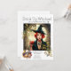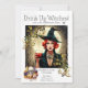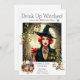 L'invitation présente une illustration captivante d'une sorcière, ornée d'un casquette de sorcière classique, sirotant du vin d'un verre. Elle se dresse sur fond de pleine lune fascinante, projetant une lueur enchanteresse. Le clair de lune baigne la scène dans une ambiance étrange mais accueillante, donnant le ton pour une soirée magique de fête.