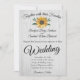 Invitation Bois blanc rustique, Mariage de tournesol doré en