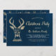 Woodland Deer Watercolor Marine Gold Christmas Party Invitation