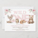 Pink Fleur sauvage Woodland Wild One 1st Birthday Invitation Sweet girls wild one 1st anniversaire invitation avec quelques fleurs sauvages roses, animaux boisés mignons et un grand texte rose.