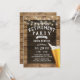 Bière de la fête de retraite brille cordes éclaire les invitations rustiques en bois.