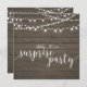 Célébrez votre jour spécial avec ce modèle d'invitation pour une fête surprise élégante. Ce design présente une calligraphie chic et des guirlandes lumineuses avec un fond en bois rustique. Parfait pour une fête d'anniversaire de mariage dans le jardin, dans une grange ou sur un thème vintage.