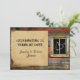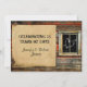 Célébrez votre jour spécial avec cet ensemble thématique amusant et romantique. Parfait pour tout thème rustique, western, country ou vintage. L'arrière-plan est en bois de grange rustique avec des accents marron, orange et turquoise. Sur le côté droit se trouve une fenêtre avec un cœur qui semble avoir été dessiné dans la poussière. Un simple encart de style parchemin met en valeur votre texte qui est présenté sur le côté gauche. Parfait pour votre mariage champêtre country western ou votre anniversaire de mariage ou événement en plein air.