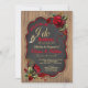 Barbecue invitation de fiançailles avec roses et rubans rouges et élégant Je fais script avec anneaux mariages sur un arrière - plan rustique en bois. Vous pouvez facilement customiser cette invitation à barbecue en bois chic rustique I do barbecue pour votre événement en ajoutant simplement vos détails.