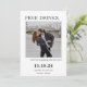 Fun et décontracté Enregistrer la date annonce avec "Boissons gratuites" dans un script amusant. Annoncez à vos amis et à votre famille que vous vous mariez! Customisez avec vos informations et votre photo.