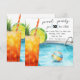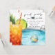 Une grande boisson tropicale au citron vert et à l'ananas est l'avant-garde de cette invitation à la fête de la piscine que vous pouvez customiser. La piscine, située dans l'arrière - plan, est équipée d'un ballon de plage de couleur arc-en-ciel flottant dans la piscine. Ajoutez plus d'informations pour vos invités au verso de cette carte. L'inverse a également la même illustration. Personnalisez-le pour vos fêtes de piscine, vos rassemblements de printemps et vos fêtes d'anniversaire. Conçu par mw1designsart.