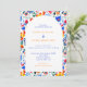 Bold Floral Folk Fiesta Wedding Invitation in bright orange and electric blue.