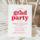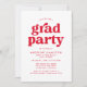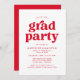 Invitations élégants de la fête de remise de diplômes avec "grad party" affiché en gras de typographie rouge avec le nom du diplômé et les détails de la fête indiqués ci-dessous. Les simples invitations de la fête de fin d'études sont parfaits pour les diplômés du secondaire et du collège.