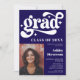 Célébrez le diplômé en style avec cette invitation à la fête de remise de diplômes d'inspiration rétro ! Avec une typographie "Grad" marine amusante et audacieuse avec des swashes ludiques et des étincelles, ce design apporte une touche vintage mais moderne. L'arrière - plan bleu vient compléter la photo d'études supérieures encadrée de façon élégante, créant une tenue de séjour exceptionnelle. Parfait pour les annonces et célébrations de fin d'études secondaires ou collégiales !
