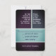 Couleurs vives. Un design simple et propre. Grand type. L'Étoile de David... bien en vue affichée en rang. Cette carte de réponse d'invitation RSVP Bar Mitzvah moderne et unique dispose d'une palette complémentaire avec chaque section définie par une couleur arrière - plan unique. Toutes les informations imprimées peuvent être customisées avec le nom de votre fils et la date de l’événement... il suffit de remplir les champs !