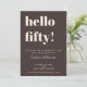 This modern 50th birthday invitation in brown features bold typography and a rich neutral color palette designed for a milestone celebration. The large “hello fifty” headline creates a strong focal point, paired with clean, minimal text that keeps event details clear and easy to read. Personalize the name, date, time, location, and RSVP information to match your event. A stylish option for celebrating a 50th birthday with a modern, timeless look.