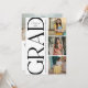 Make a statement with this bold typography graduation party invitation featuring oversized "GRAD" lettering alongside three senior portrait spots and a full back photo. The striking mix of dramatic serif type and elegant script creates a modern, editorial feel. All text is fully customizable on both sides to share your celebration details.