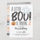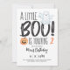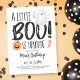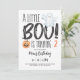 Octobre Anniversaire Halloween thème anniversaire de fête d'invitation comprend "Un petit Boo est tournant...." typographie avec un joli fantôme aquarelle et jack o'lantern et accents écriture manuscrite. Les couleurs gris et orange sont parfaites pour une fille ou un garçon. Art par KL Stock.