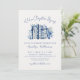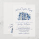 A New Chapter Begins. Celebrate the bride-to-be with this elegant book-themed bridal shower invitation. At the top, “A New Chapter Begins” is displayed in a soft handwritten script in navy blue, setting a refined and romantic tone. Just below, a watercolor stack of blue and white books features delicate chinoiserie-inspired floral patterns, accented with coordinating blue and white flowers for a timeless, classic look.