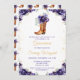 Invitation Boot de cowboy Floral foncé violet or Quinceañera