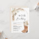 Boho moderne Beige Floral Boots 40e Anniversaire Invitation Toute invitation d'anniversaire de boho d'âge comportant des bottes de cowgirl, et de belles compositions florales beige, cap de calligraphie moderne et forme voûtée. Idéal pour quelqu'un à la recherche d'invitation d'anniversaire bohème de couleur neutre.