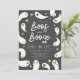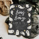 Carte modèle d'invitation à la fête d'halloween moderne et fantaisiste avec un texte de typographie écrit à la main au milieu qui dit "BOOS & BOOZE." Illustration de mignons fantômes avec étoiles.