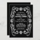 Une bordure blanche ornée sur un arrière - plan noir, et les détails de votre fête en lettres blanches chic, ces invitations sont amusantes pour une invitation de fête costumée Hallloween, des invitations de fête d'anniversaire Halloween, juste changer le libellé pour s'adapter à votre occasion. Disponible sous forme d'invitations imprimées et de téléchargement instantané pour imprimer vous-même ou pour envoyer numériquement. CORRESPONDANCE d'objets dans notre collection.