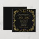 C'est une invitation élégante pour une célébration de 50e anniversaire de mariage aussi spéciale que le couple à célébrer ! Elle présente une bordure ornementée à paillettes dorées avec votre texte personnalisé au milieu. La partie supérieure du texte de couleur or clair est séparée de la partie inférieure par un motif calligraphique en forme de volute, également doré. Le verso de l'invitation est d'un noir uni assorti. Très classe ! *Remerciements spéciaux à Dana Conditt pour l'utilisation de son œuvre dans ce design.