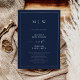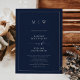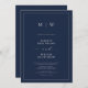 Invitation Bordure et Mariage de monogramme bleu marine