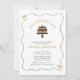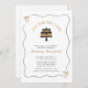 Frontière Wavy Whimsical avec Bows Gold et Black Illustrated 50th Birthday Party Invitation... Notre invitation fantaisiste féminine 50e anniversaire présente des lignes ondulées dessinées à la main et de jolies illustrations d'arcs créant une bordure de doodle amusante et tendance pour le texte de l'invitation à l'intérieur. Un gâteau d'anniversaire à deux niveaux dessiné à la main en noir et or apparaît juste sous la rubrique "C'est le grand 5-oh". Une police serif élégante affiche le libellé de l'invitation et tout le texte peut être facilement révisé avec vos propres détails sur le modèle de personnalisation.