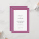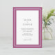 Faire-part de mariage moderne avec un design simple mais élégant avec vos détails à l'intérieur d'une double bordure. Le thème de couleur est framboise / mauve et peut être modifié dans l'outil d'édition de conception. La couleur vive fait de cette invitation une invitation idéale pour un mariage tropical ou de plage au printemps ou en été.