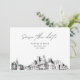 Moderne Boston noir et blanc enregistrer l'invitation de date. L'avant présente un sketch époustouflant, donnant le ton parfait pour votre jour de mariage. Ajoutez votre propre photo au dos et customisez le texte pour en faire votre propre photo. Entrez l'outil de conception Zazzle pour des personnalisations de conception supplémentaires.
