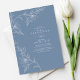 Announce your special day with this elegant dusty blue botanical wedding invitation. This design features delicate white floral line art gracefully arranged across a soft dusty blue background, creating a refined and romantic look. The clean typography combined with subtle script accents adds a modern yet timeless touch.