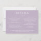 Branche botanique blanche dessinée à la main et texte, détails du mariage fiche du boîtier modèle d'informations. On peut customiser la couleur Arrière - plan, illustrée dans le mauve chic et poussiéreux. Modèle fournit plusieurs lignes pour vos informations détaillées. Réception, hébergement et site Internet inclus.