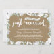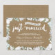 Cette élégante et moderne invitation d'anniversaire de 35 ans de mariage présente une belle calligraphie au pinceau, de magnifiques fleurs bleues et blanches, une typographie qui indique "Juste mariés (il y a trente-cinq ans !)", et un fond en papier kraft imprimé.