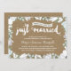 Cette élégante et moderne invitation d'anniversaire de mariage de 35 ans présente une belle calligraphie au pinceau, de magnifiques fleurs bleues et blanches, une typographie qui indique "Juste mariés (il y a trente-cinq ans !)", et un fond en papier kraft imprimé.