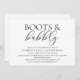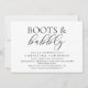 Script élégant moderne (Bottes et mousseux) Carte d'invitation de la fête de douche nuptiale. Invitation les invités avec cette carte d'invitation parfaite. Super facile à ajouter / modifier avec vos détails de la fête de la douche nuptiale.
