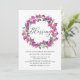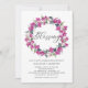 Famille Invitation et amis à votre événement avec cette invitation fleurie de bénédiction bébé. Il présente des illustrations d'aquarelle de couronnes de bougainvilliers pourpres avec motif assorti. Cette invitation à la couronne fleurie est parfaite pour les bénédictions du printemps et de l'hiver. Personnalisez en ajoutant des noms, heure, date et autres détails de l'événement.