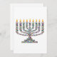 Hanukkiah fait avec des pierres gemmes dans toutes les couleurs et les formes. A l'arrière se trouve un très beau Magen David !
