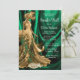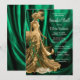 Invitation à boule basket vert émeraude et or avec jolie robe or et baskets sur un bel arrière - plan vert émeraude. Vous pouvez modifier le texte au besoin pour votre événement. Imprimez sur papier brillant pour obtenir de meilleurs résultats.