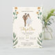 Invitation de bouquet de mariage tropical à ruban jaune Le thème du mariage comporte du texte dans un cadre dessiné à la main avec un dessin de bouquet sur un fond rayé jaune foncé.