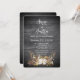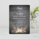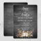 Chaîne de lumières brillantes dans un bouquet floral de bois de cerf sur du bois noir rustique pour une invitation de mariage automnal.