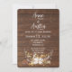 Chaîne lumineuse dans un bouquet floral en bois de cerf sur bois brun rustique pour une invitation de mariage d'automne.