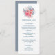 Belle et élégante carte de dîner de Noël personnalisable sur arrière - plan blanc avec bouquet de fleurs d'hiver sur le dessus. Le style mince de la carte a assez d'espace pour toutes les informations nécessaires. Customisez avec les détails du menu et l'occasion dans des champs fournis avec sans serif minimaliste police.