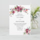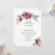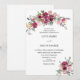 Cette belle et élégante faire-part de mariage fleurie est ornée d'un bouquet de rose bordeaux et blush sur un arrière - plan blanc-neige. Cette invitation design unique respire à la fois le romantisme et l'élégance. © Julie McIver