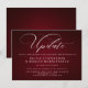 Magnifique modèle de couleur Bourgogne avec lettrage blanc et une grande calligraphie - "Mise à jour" en haut - Si vous avez envoyé les invitations et que vous avez dû suspendre de manière inattendue la date de votre grand événement, envoyez celles-ci à vos invités. Nous avons utilisé une police d'écriture manuscrite moderne pour le titre 'nouveaux plans', vous pouvez facilement modifier ce texte en tapant entre les petites cases pour conserver les enjolivures de début et de fin. Utilisez le reste des champs du modèle pour ajouter vos informations personnelles et personnaliser ce design moderne.