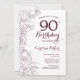 Invitation Bourgogne Floral 90e fête d'anniversaire