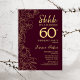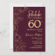 Bourgogne Gold Surprise 60e Anniversaire Invitation. Le minimaliste marron design féminin moderne comporte des accents botaniques et des caractères typographiques. Carte invitation florale simple parfaite pour une célébration anniversaire surprise femme élégante.