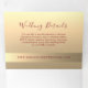 Cette faire-part de mariage moderne à triple pli présente un centre bourgeois audacieux encadré par une chaude pente dorée au champagne avec un script élégant et un motif cardiaque minimaliste. Conçu pour la commodité et le style, il comprend un espace pour RSVP, le site Web mariage et les préférences de repas, le tout dans un format écologique. Remarque : Cette invitation triplée nécessite une enveloppe distincte pour l'envoi. Nous vous recommandons d'utiliser une enveloppe A9 standard (5,75 po x 8,75 po) pour un meilleur ajustement.