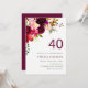 Invitation Bourgogne Red Boho Floral 40e fête d'anniversaire
